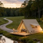 Geodesic dome glamping tents combine outdoor living with modern amenities such as comfortable beds, lighting, heating, and private bathrooms. Travelers enjoy adventure without giving up comfort.
