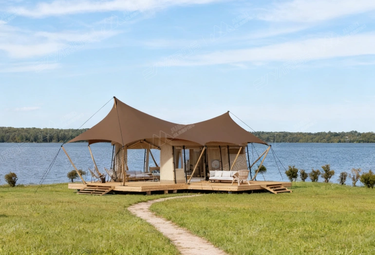 The price of a glamping dome tent is generally at a fraction of a traditional or new glamping pod , yurt, or luxury safari lodge tents with the same floor area. Among most glamping tents, perhaps bell tents and small safari tents are comparable in price to glamping dome tents, however, bell tents are not semi-permanent glamping tents, and safari tents are not as good as glamping dome tents in terms of solidity and applicability.2. Sturdy and safe structure: