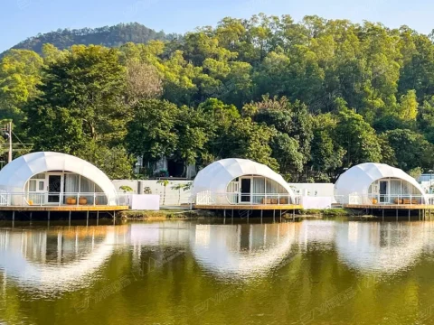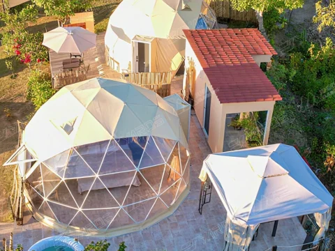 We provide many sorts of geodesic dome tents including glamping dome tent, event dome tent, open geo dome tent, amphitheatre style tent, projection dome tent and so on. These tents are widely used for glamping resorts, events, festivals, weddings, trade show, sport events etc.