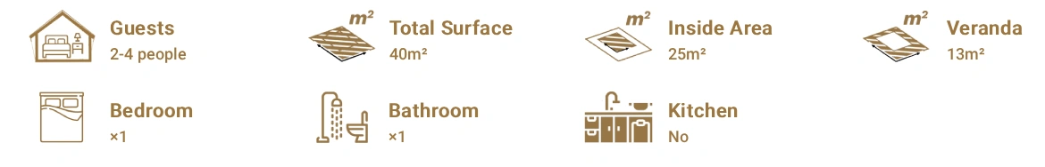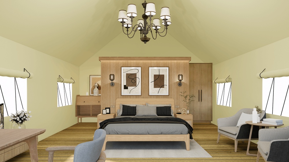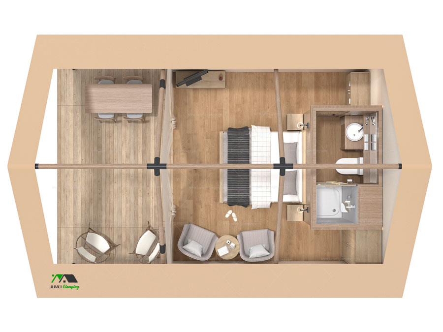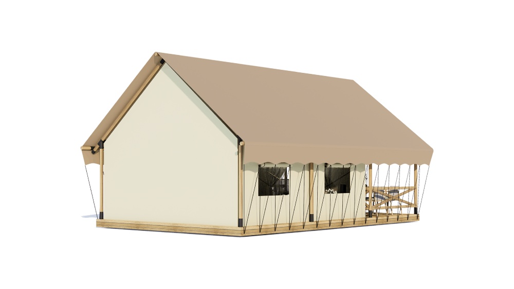 B40 Safari Tent derived from the traditional Wall Tent design, this model has been upgraded with a spacious front veranda, a sturdy solid wood frame, a durable PVC roof, and premium Oxford fabric sidewalls. These enhancements create an open and adaptable interior, making it a refined and high-end safari tent. As one of our most popular models, it’s an excellent choice for glamping resort owners, project planners, and investors seeking both style and reliability.