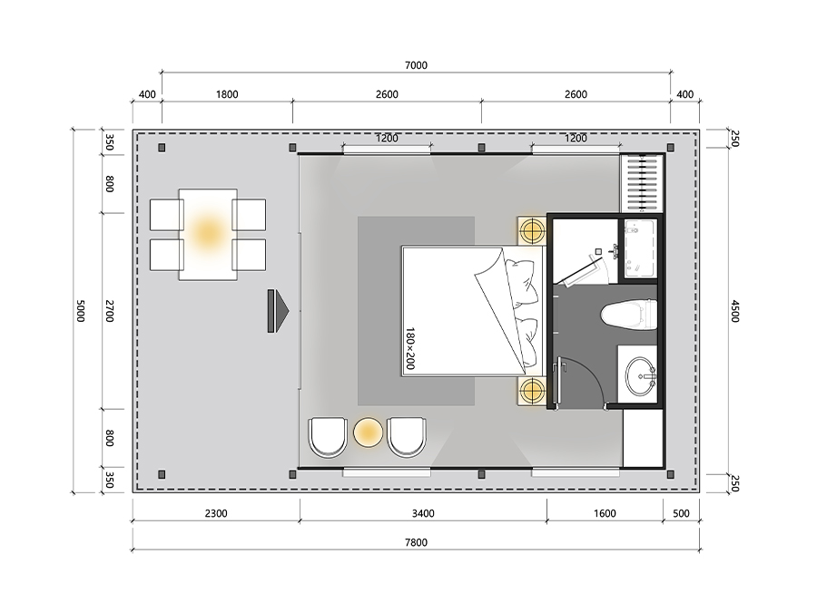 | External Size | 4.5m x 7m = 31.5m² |