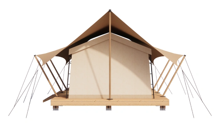 G38 luxury tent is a premium modular retreat that breaks away from conventional building methods. Its flexible structure adapts to diverse terrains, allowing installation in mountains, open fields, deserts, lakesides, or coastal areas without limitation. With rapid assembly, cost efficiency, robust quality, and effortless mobility, this upscale tent becomes an ideal solution for elevating any campsite.