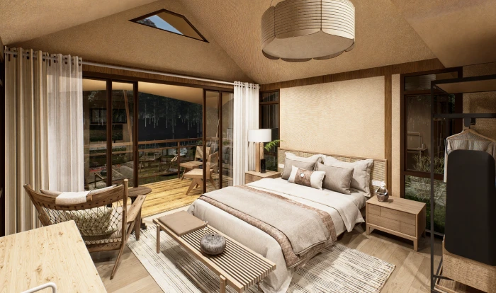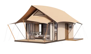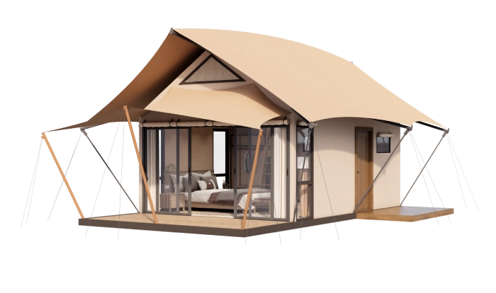 T26 Stretch Tents design is inspired by wild and dynamic vitality. Its free-flowing curves symbolize the beauty of individuality and originality. It integrates tent, house and open terrace space, with a surrounding light-transmitting design and a 360-degree panoramic view. It balances the natural wildness and the joy of life, and perfectly blends comfort and nature.