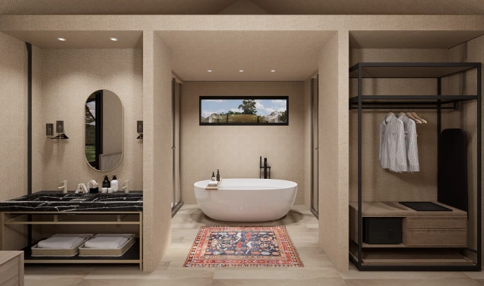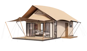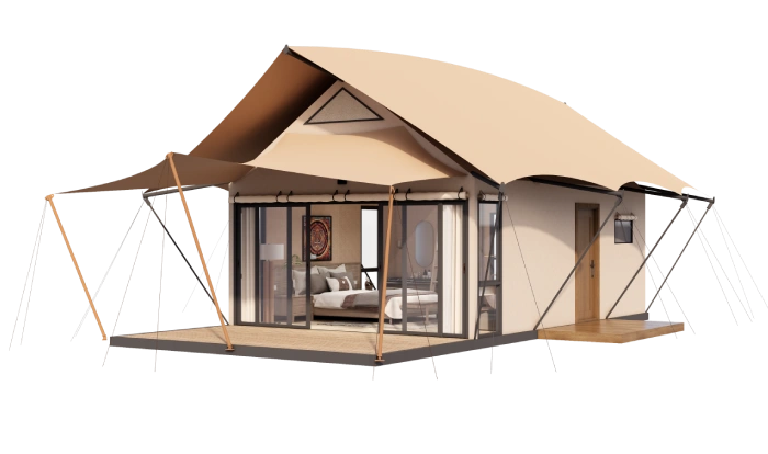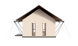T35 Stretch Tents draw inspiration from untamed energy and fluid motion. Their organic silhouettes celebrate uniqueness and creative expression. The structure merges the functions of a tent, a compact dwelling, and an open terrace, featuring translucent sides and a full 360-degree panoramic outlook. It strikes a harmony between natural ruggedness and everyday enjoyment, creating a seamless blend of comfort and the outdoors.