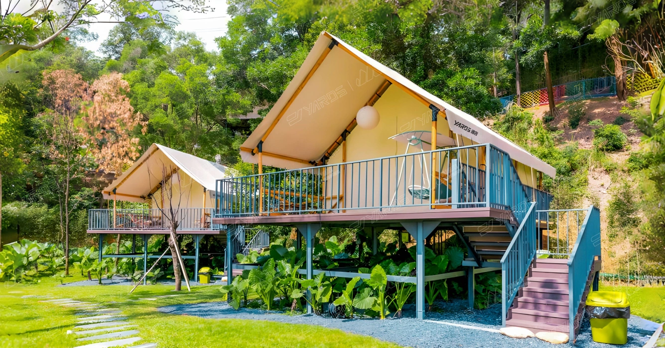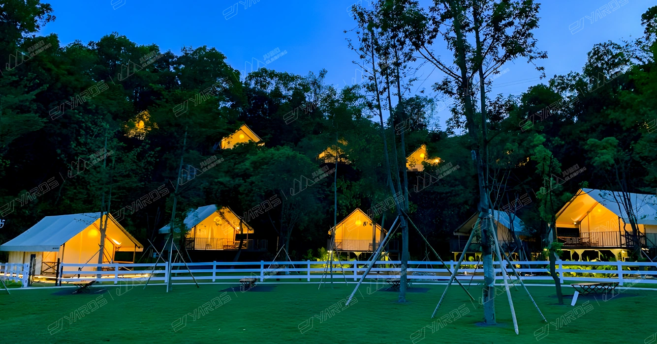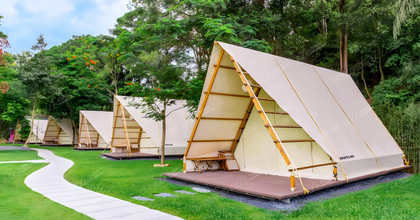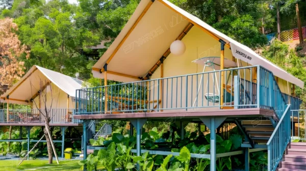 For this project, we delivered nearly 20 units for our client, including our attic-style Classic Safari Tents (B45) and the stylish A-frame Safari Tents (AX17).